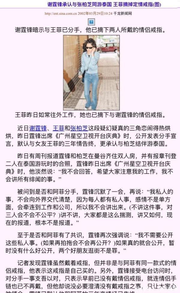 张柏芝与谢霆锋的婚姻结束于2012年,那一年双方正式办理离婚手续,此前已于2011年宣布分开。离婚声明中提到双方和平分手,感谢彼此相处的时光,并表示会共同抚养两个儿子。离婚后,张柏芝获得儿子的主要抚养权,她选择将生活重心放在家庭,减少公众曝光,转向幕后或接少量工作。那段时间她主要陪伴长子Lucas和次子Quintus成长,偶尔现身公益活动或品牌代言,但整体保持低调状态。 谢霆锋在离婚后迅速投入工作,他继续发展音乐事业,同时拓展影视制作,推出个人品牌PO朝霆,涉及多个领域。2014年9月,谢霆锋通过社交平台承认与王菲复合,两人此前曾在1999年至2003年交往,分手后各自结婚生子,此次复合引发广泛关注。王菲那时已与李亚鹏离婚,两人复合后多次被拍到一同出行,王菲出席谢霆锋演唱会,谢霆锋现身王菲演出现场,关系稳定公开。